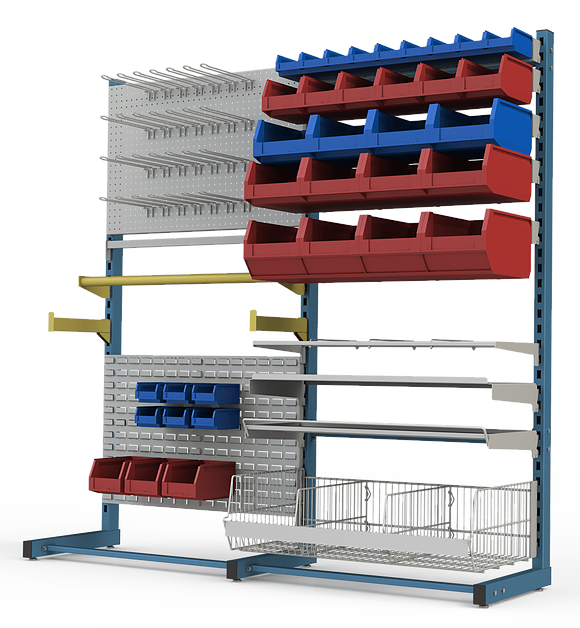 Гибкое и надежное решение: металлические стеллажи предназначены для хранения, транспортировки, презентации товаров, болтов, гаек, шурупов, саморезов, гвоздей и различного крепежа. Используется как торговое оборудование для метизов и крепежа и так же для магазинов авто запчастей, продажи сантехнической продукции, ремонтных мастерских, складов и рабочих постов.
